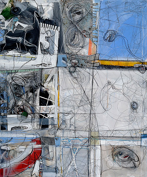familiar refrain, 2011, acrylic paper pastels pencil on canvas, 48x40in
