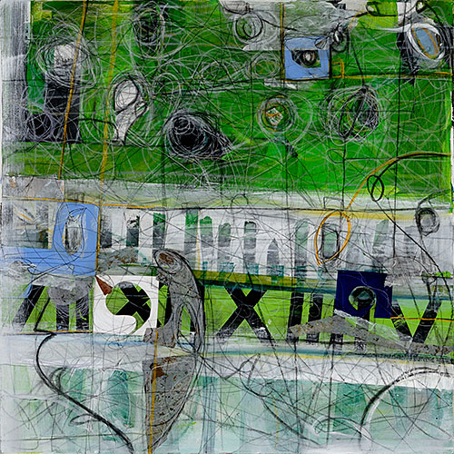 mitra, 2010, acrylic ink pastels on canvas, 36x36in
