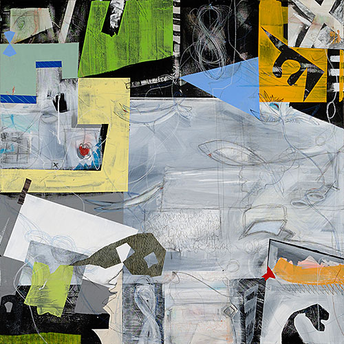 local construction, 2009, acrylic paper pastels on canvas, 48x48in