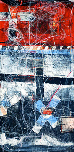 custer, 2010, acrylic ink pastels on canvas, 18x36in