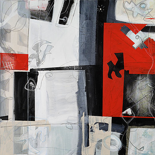 neuebauten, 2009, acrylic paper pastels on canvas, 48x48in