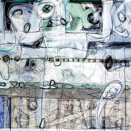 mind mining, 2010, acrylic ink pastels on canvas, 36x36in
