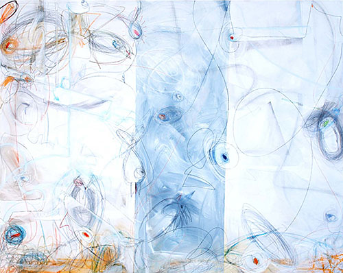 meantime, 2007, acrylic oil ink pastels paper on canvas, 48x60in
