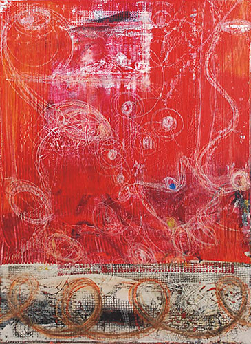 pink plot, 2006, acrylic oil ink pastels on canvas, 18x24in
