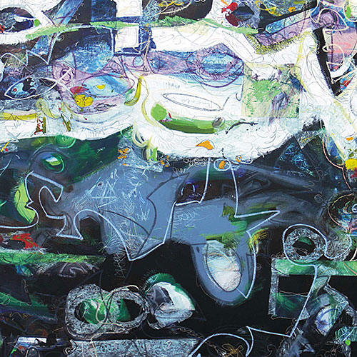 eco atlantico, 2006, acrylic oil ink pastels paper on canvas, 48x48in