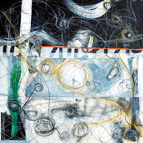 roomy folds, 2010, acrylic ink pastels on canvas, 36x36in