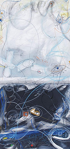 sew alone, 2007, acrylic ink pastels paper on canvas, 24x48in